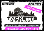showers, fire pits and Wi-Fi. With outfitters nearby and Reds General Store just down the road, Tacketts Hideaway is your all-
